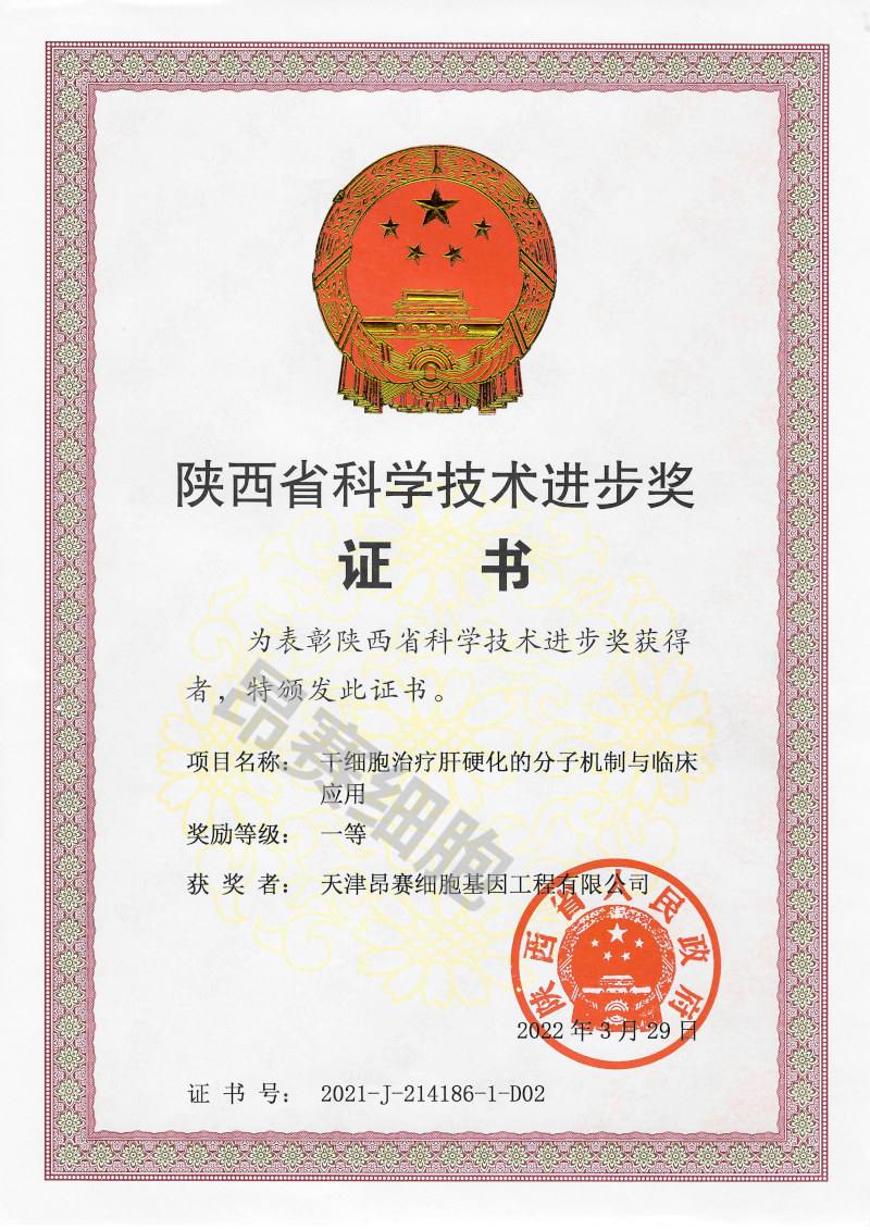 公司合作項目《干細(xì)胞治療肝硬化的分子機制與臨床應(yīng)用》獲得陜西省科學(xué)技術(shù)進步一等獎。