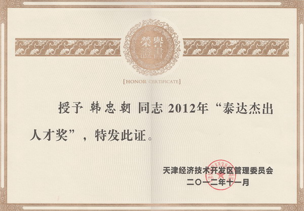 ????? ?11月28日天津開發(fā)區(qū)舉行科技型中小企業(yè)發(fā)展推動會上公布了2012年開發(fā)區(qū)人才評優(yōu)表彰結(jié)果,我公司董事長兼總經(jīng)理韓忠朝教授榮獲“泰達杰出人才獎”。與此同時,韓忠朝教授還榮獲了中國醫(yī)學28日天津開發(fā)區(qū)舉行科技型中小企業(yè)發(fā)展推動會上公布了2012年科學院頒發(fā)的“突出貢獻獎”。